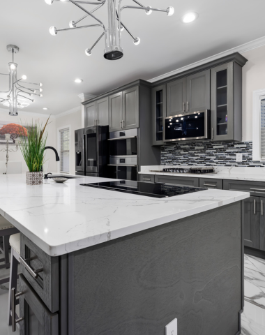 Transform your kitchen with elegant and durable granite or quartz countertops that combine functionality with timeless style